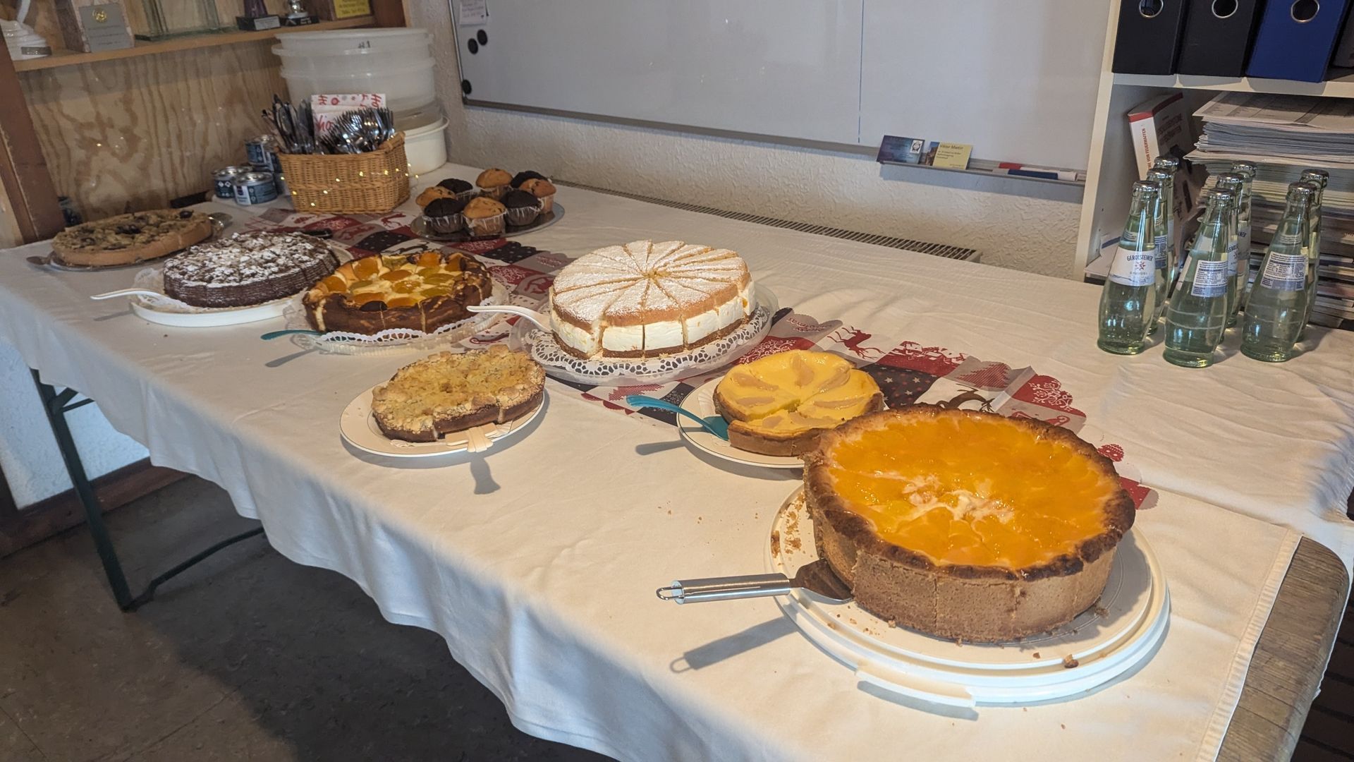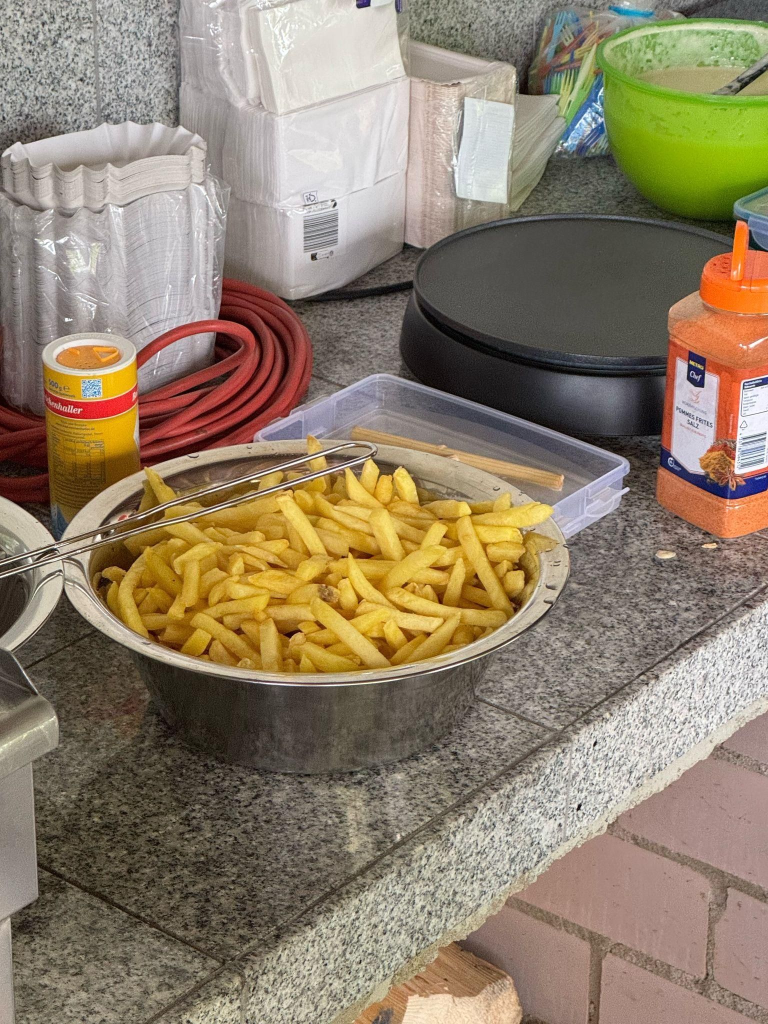 Auch für die Bewirtung war gesorgt und neben zu den Getränken gab es eine reiche Auswahl an Kuchen, Schwenkbraten oder Pommes Frites. Insbesondere letztere wurden stark nachgefragt, so dass die bevorrateten 12 kg bereits um 14 Uhr zur Neige gingen.