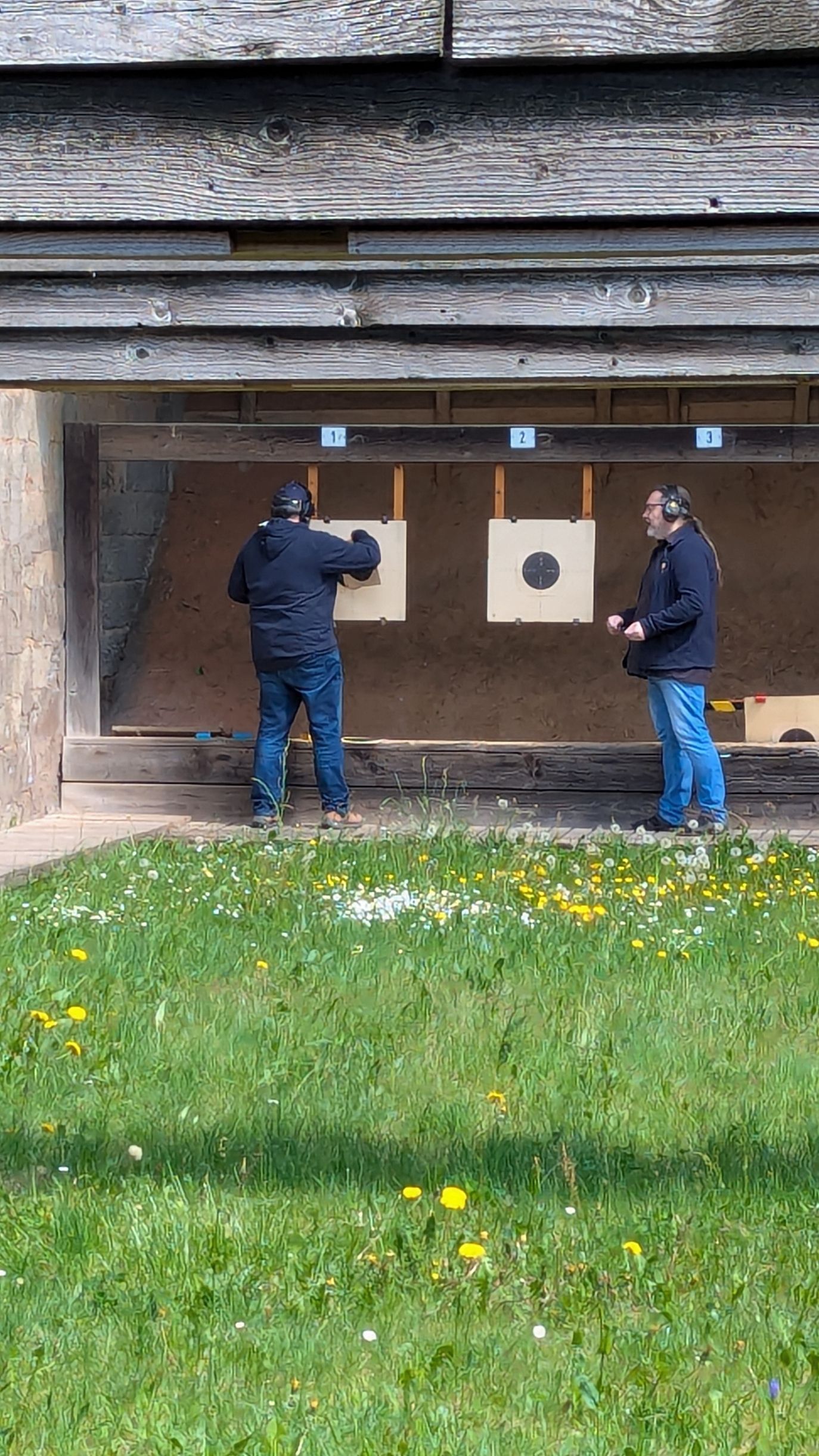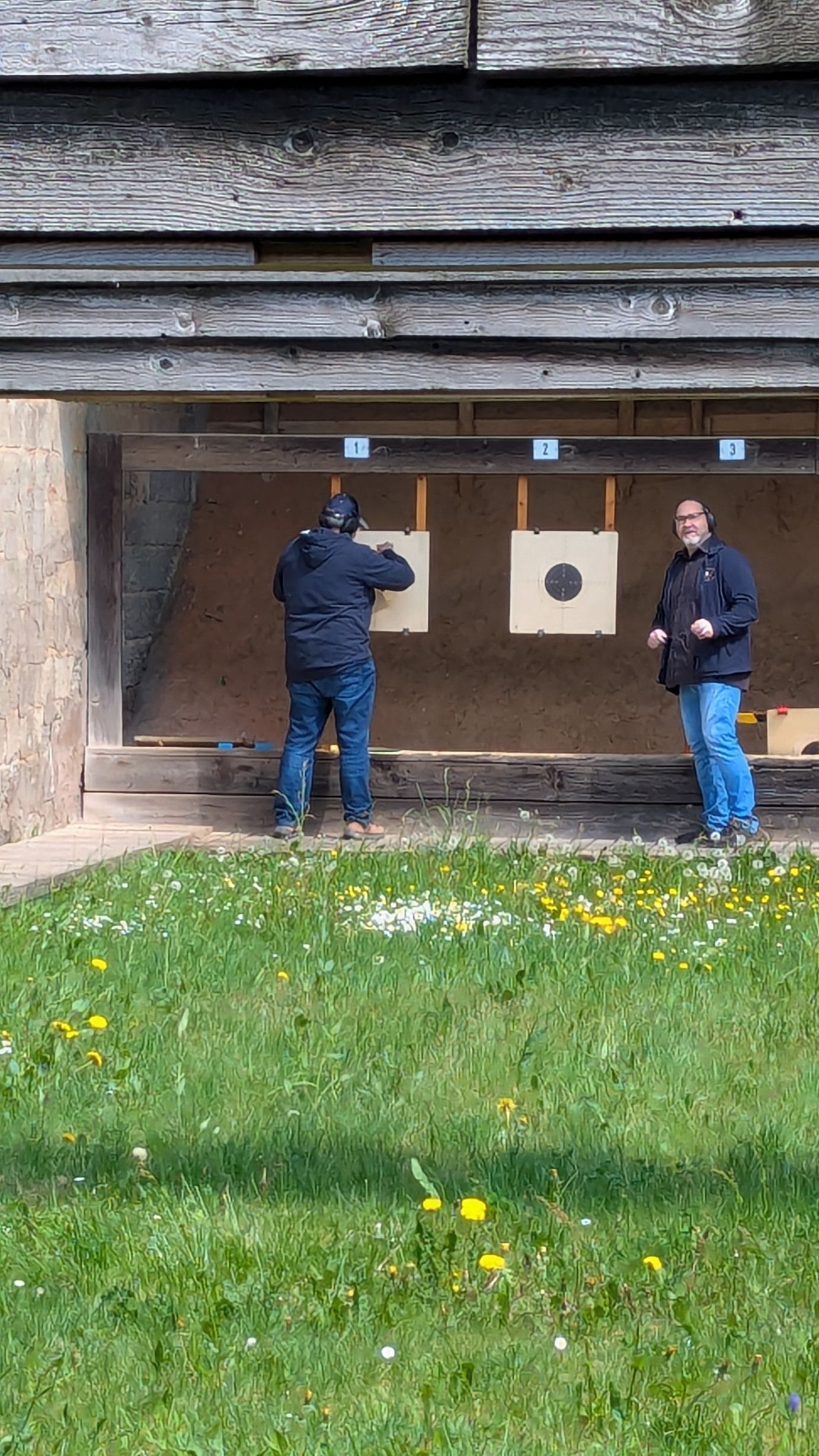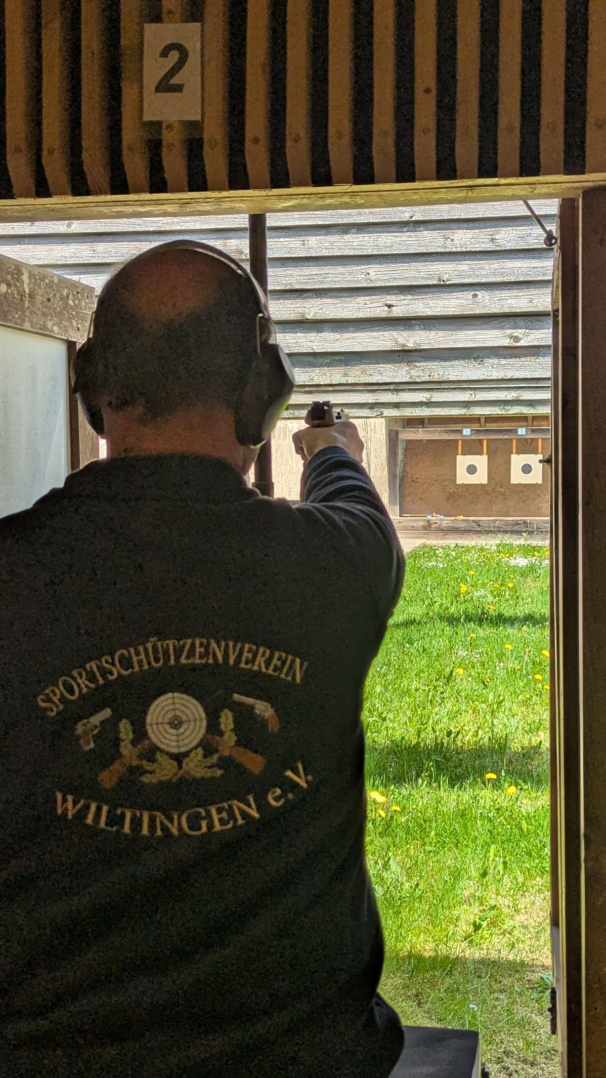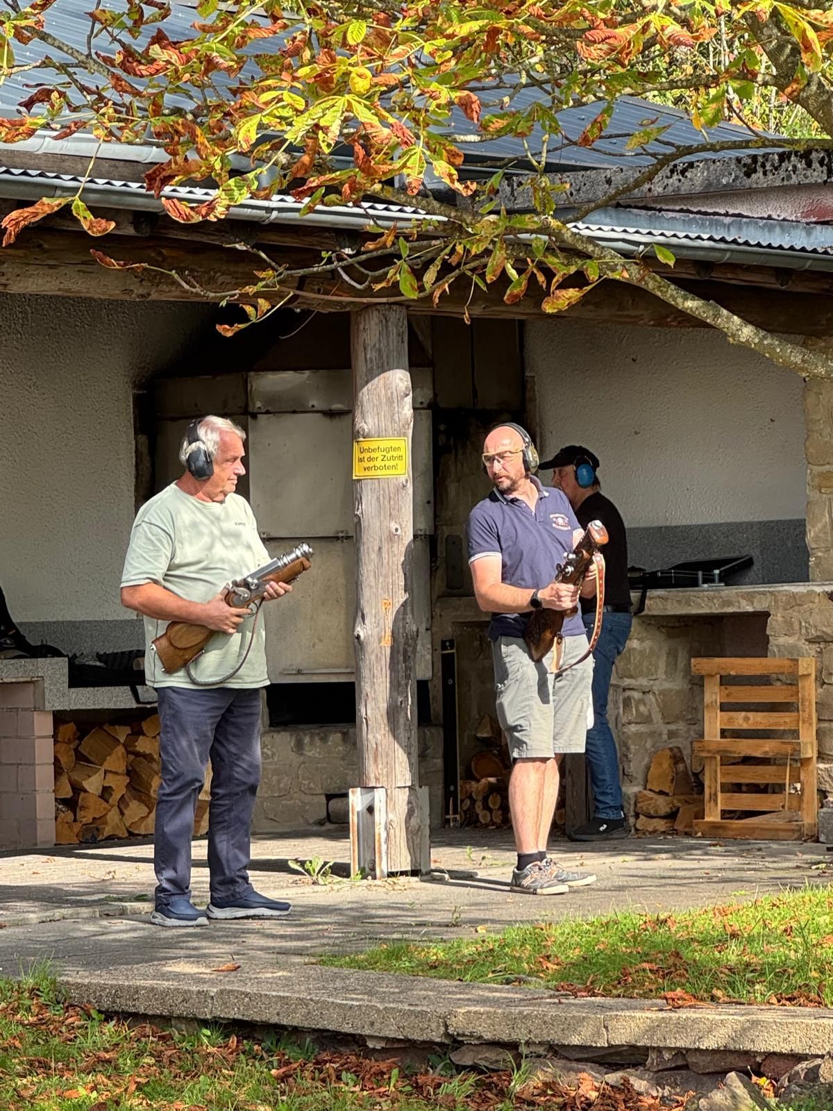 Bei der Vereinsmeisterschaft 9mm Zentralfeuerpistole am 4. Mai 2025 wurde der kürzlich instandgesetzte Duellstand wieder kräftig genutzt. Mehrere Durchgänge von Schützen und auch die Schießleitung freuten sich, dass die Duellanlage wieder zuverlässig funktioniert.