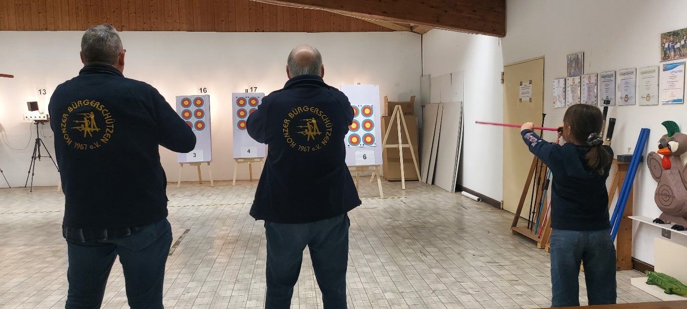 Auch die gemeinsame Teilnahme von Kindern mit den erwachsenen Schützen währen des Blasrohrschießens verlief reibungslos und auf Augenhöhe.