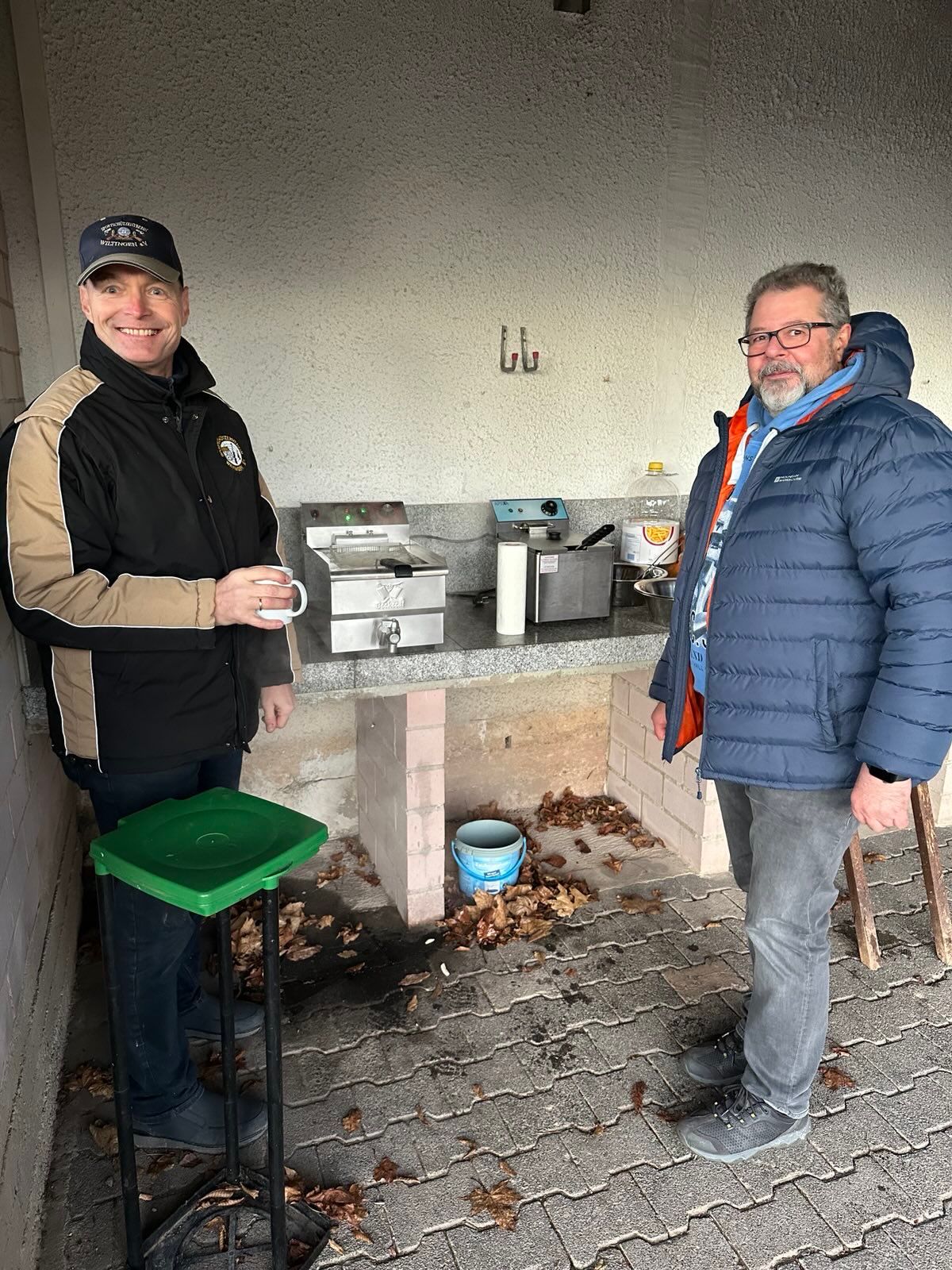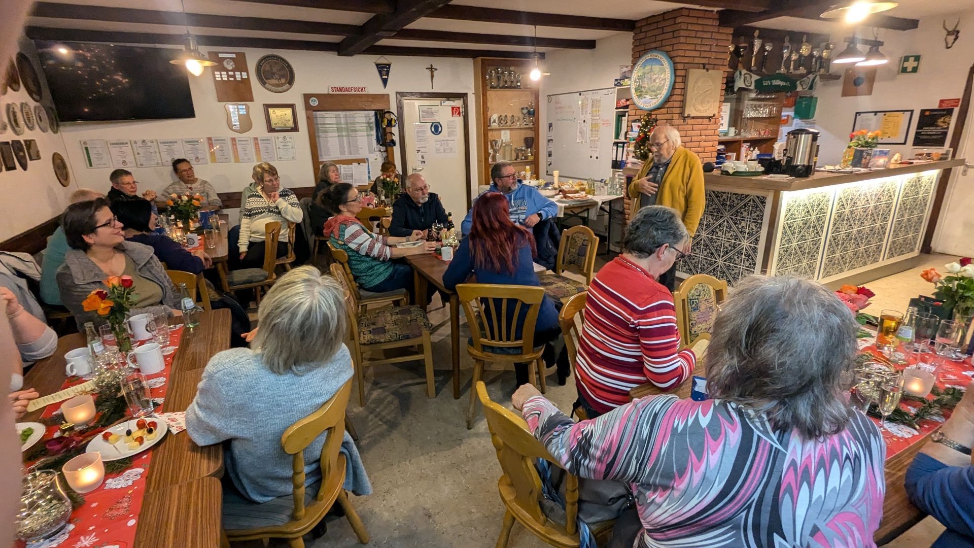 Trotz wolkenverhangenem Himmel fanden sich bei milden Temperaturen ca. 30 Mitglieder und Gäste zusammen, um den Böllerschützen zuzusehen, die auf dem Vereinsgelände in mehreren Salven von Handböllern, Standböllern und Böllerkanonen die alte Tradition wieder aufnahmen.