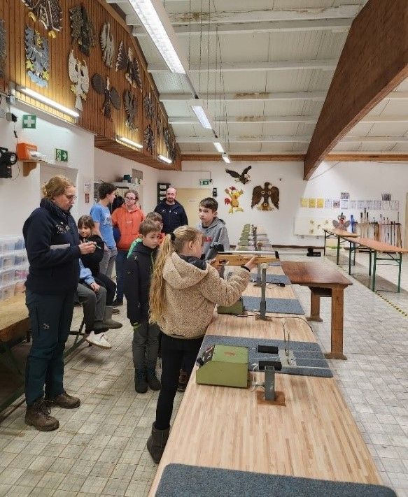 Die Erwachsenen schossen wie gewohnt auf 25 m mit dem Kleinkalibergewehr auf den Holzadler.