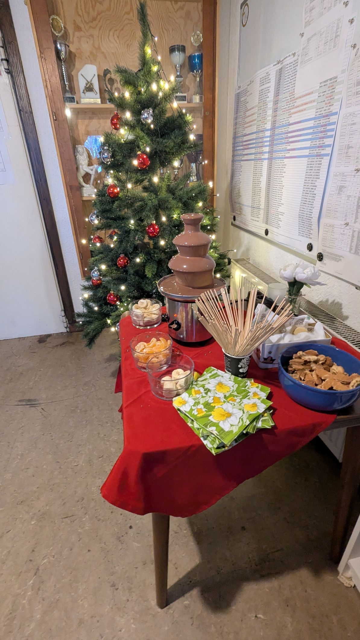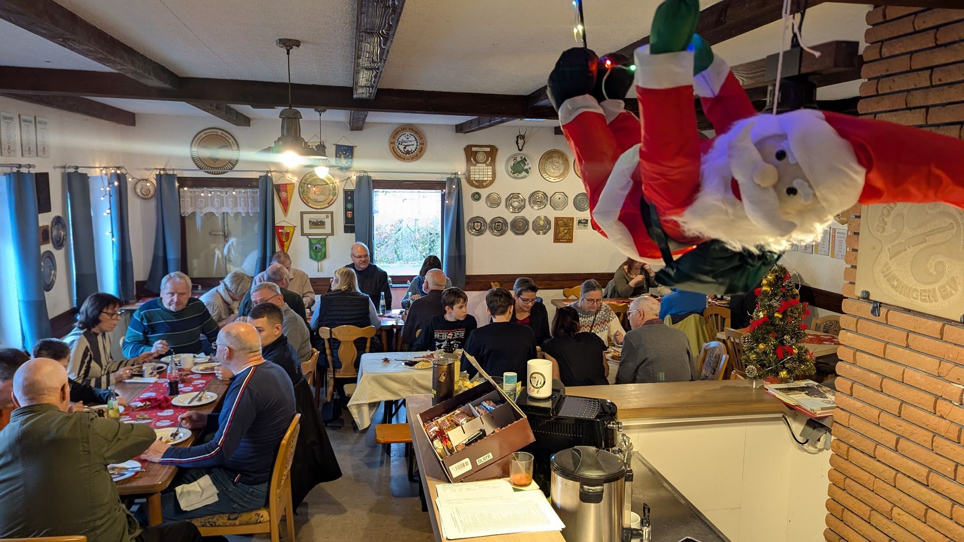Am 14.12.2025 fand nach dem morgendlichen Training die traditionelle Weihnachtsfeier des SSV Wiltingen mit Rindergulasch, Rotkraut und Spätzle als Weihnachtsessen statt. Abgerundet durch Kuchen und einen Schokoladenbrunnen war bei wie üblich reichhaltigem Getränkeangebot sowie weihnachtlicher Dekoration und Musik für das leibliche Wohl der ca. 35 angemeldeten Teilnehmer bestens gesorgt. Besonderer Dank geht an Sabine und Nina, die bei der Essenszubereitung perfekt harmonierten und eine Menge Lob bekamen.